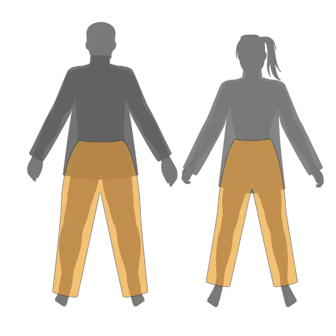 For body types with wider hips, our relaxed pants allow for more room