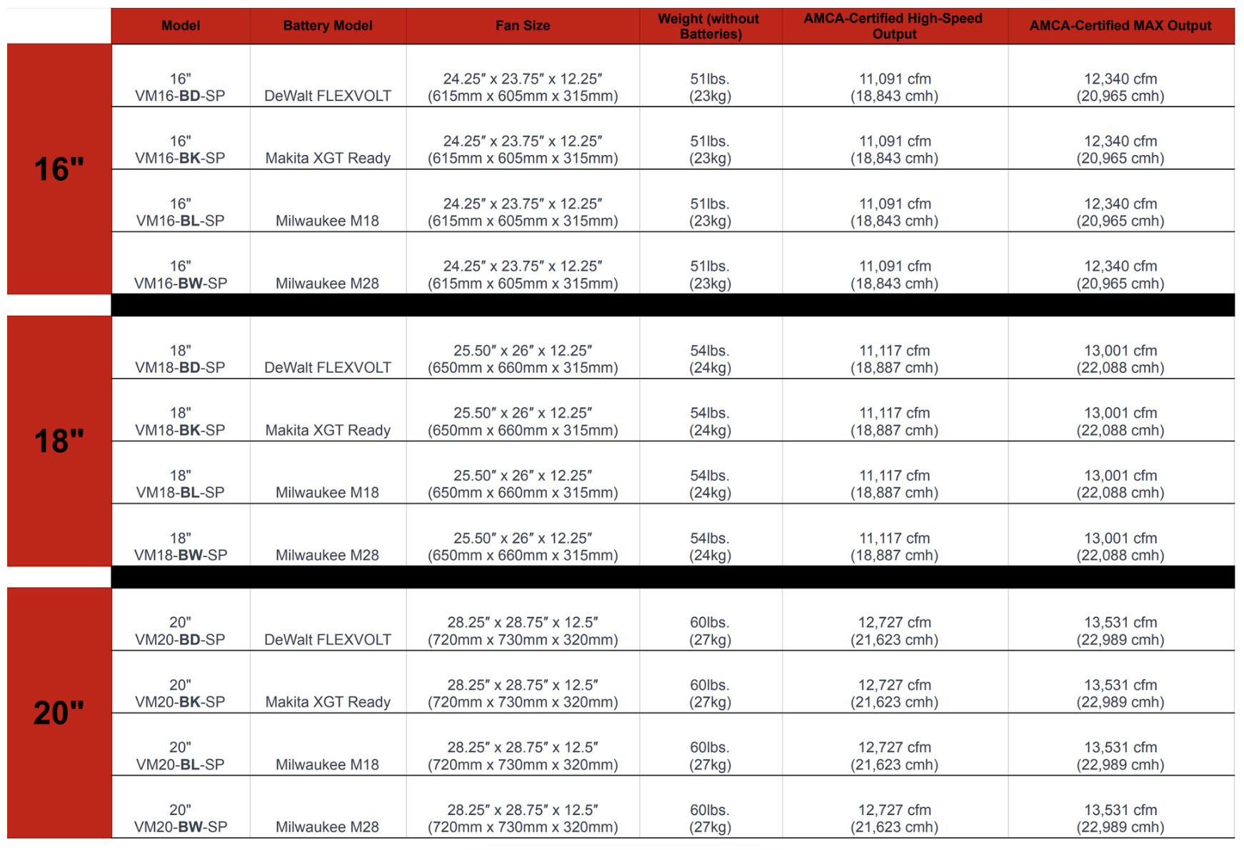 | Product Type | Fan w/Shore Power, Wheels/Handle, No Batteries & No Chargers (Use DeWalt Flexvolt) or Fan w/Shore Power, Wheels/Handle, No Batteries & No Chargers (Use Makita XGT) or Fan w/Shore Power, Wheels/Handle, No Batteries & No Chargers (Use Milwaukee M18)) or Fan w/Shore Power, Wheels/Handle, No Batteries & No Chargers (Use Milwaukee M28) |